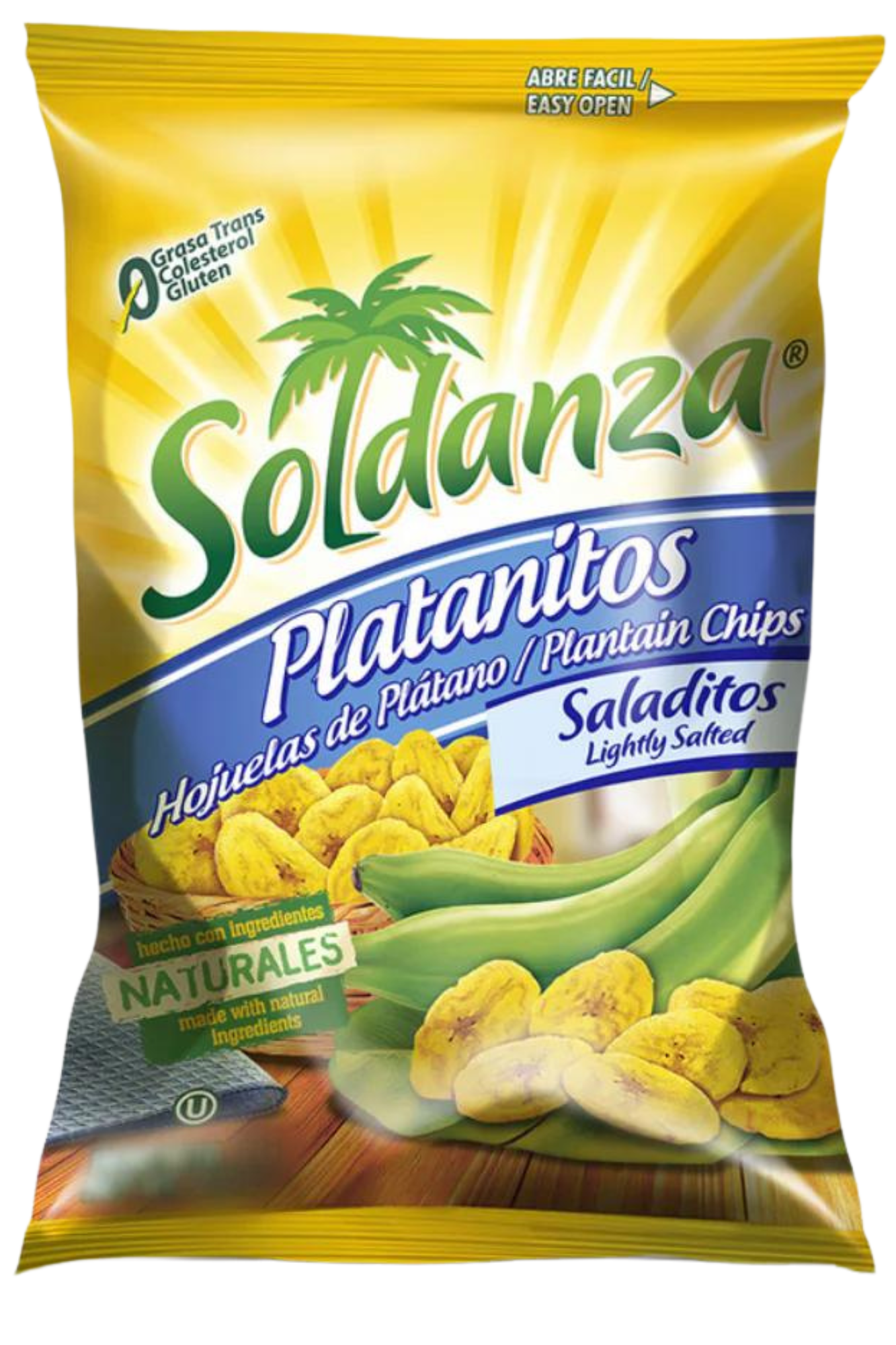 the perfect blend of sweet and spicy savory. Our ripe plantain chips are expertly fried for a crisp, golden crunch and seasoned with a subtle sweet pepper kick. Each bag comes with an easy-to-open “Abre Fácil” feature for ultimate convenience. Whether you’re on-the-go or enjoying a snack at home, Soldanza Maduritos offers a delicious, healthy treat with every bite.